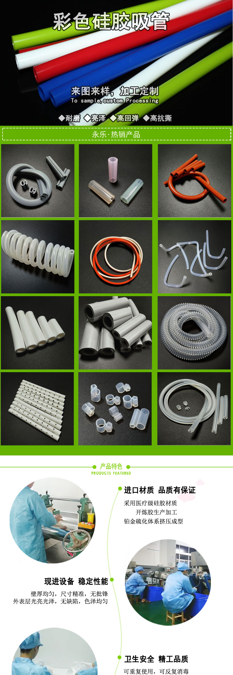 擠出硅橡膠制品????????產(chǎn)品名稱: 食品級彩色硅膠吸管