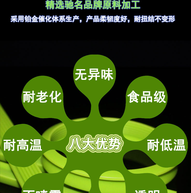 采用進口硅膠材料,設有專業(yè)粘接部門,負責硅膠密封條的剪切與粘接,粘接口牢固,可承受5KG拉力;常規(guī)硬度60度(邵氏硬度值30-90度);耐溫范圍廣(-50~+280℃),可以適應高、低溫設備需求,并耐老化。常規(guī)PE袋+紙箱包裝;產品符合SGS、FDA、LFGB等標準;用于飯盒、保鮮盒、米桶、電池盒,餐盒,儲物盒等。