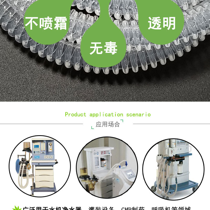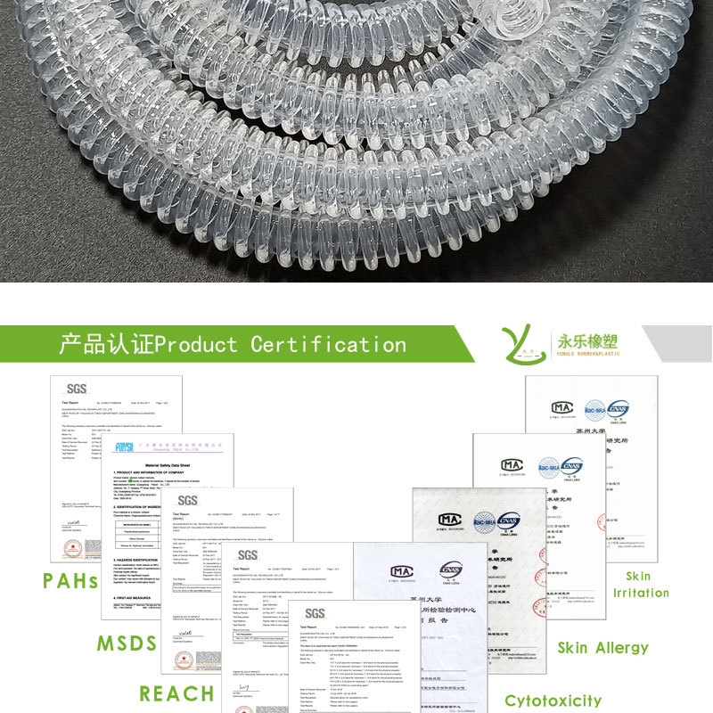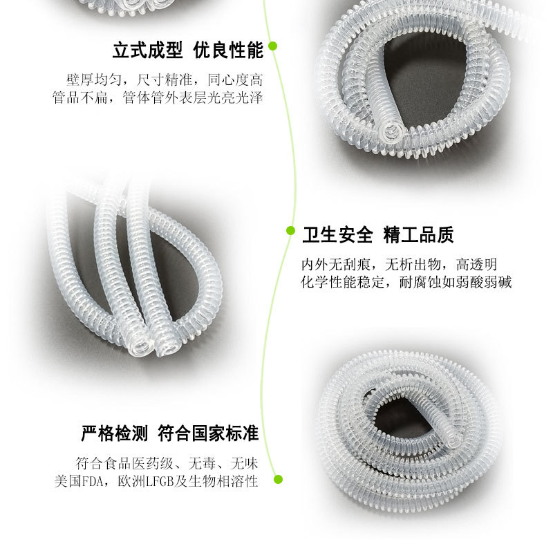 波紋硅膠管:采用進口硅膠原材料,連續(xù)擠出一次成型,內(nèi)壁平滑;常規(guī)硬度60度(邵氏硬度20-80度);耐溫范圍廣(-50~+280℃),可以適應(yīng)高、低溫設(shè)備需求,并耐老化。常規(guī)PE袋+紙箱包裝,特殊要求可按客戶標準;產(chǎn)品符合SGS、FDA、LFGB、生物相溶性等;用于醫(yī)用設(shè)備、麻醉機、機械連接、食品傳送設(shè)備等。