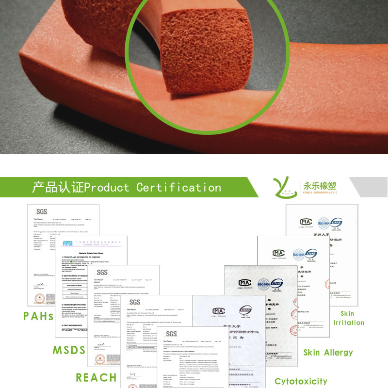 產(chǎn)品認(rèn)證:我司發(fā)泡條可達(dá)到食品FDA,SGS等