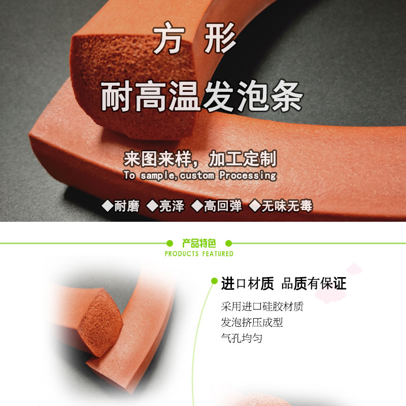 發(fā)泡硅橡膠制品產(chǎn)品名稱: 耐高溫方形發(fā)泡硅膠條