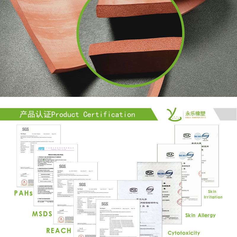 產(chǎn)品認(rèn)證:發(fā)泡條類可達(dá)到食品FDA,發(fā)泡板ROHS等