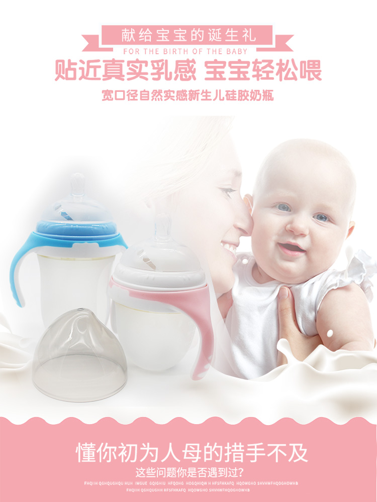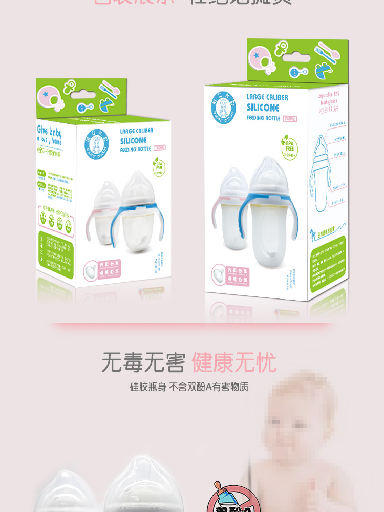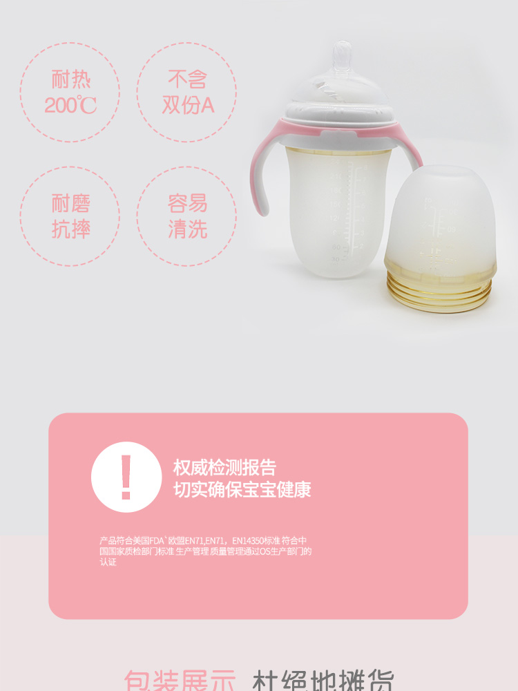 OEM/ODM定制加工產(chǎn)品名稱:廣口硅膠奶瓶