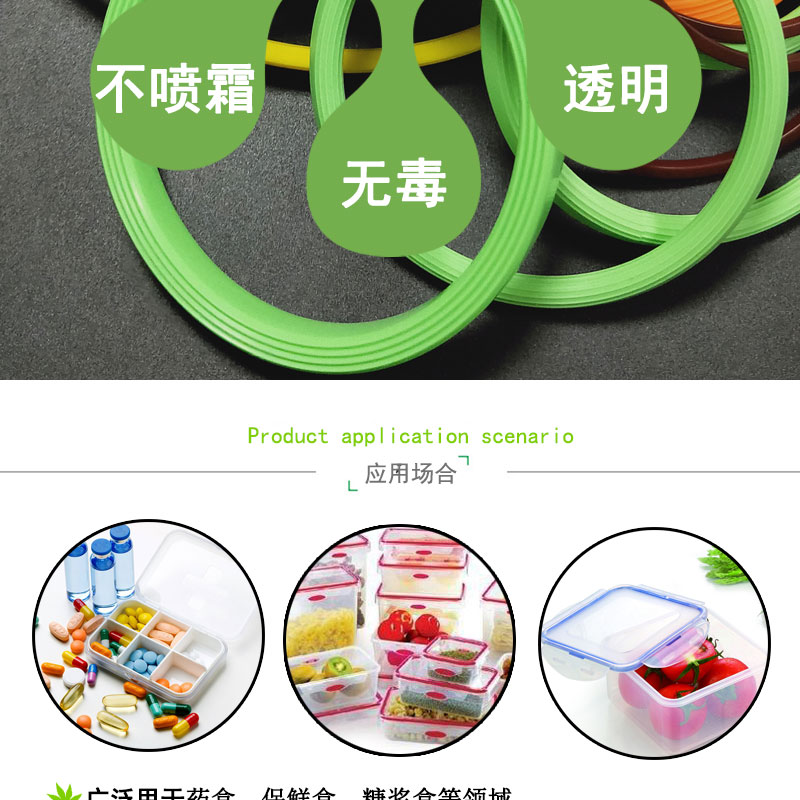產(chǎn)品用途: 用于飯盒密封圈,保鮮盒密封圈,真空盒密封圈等