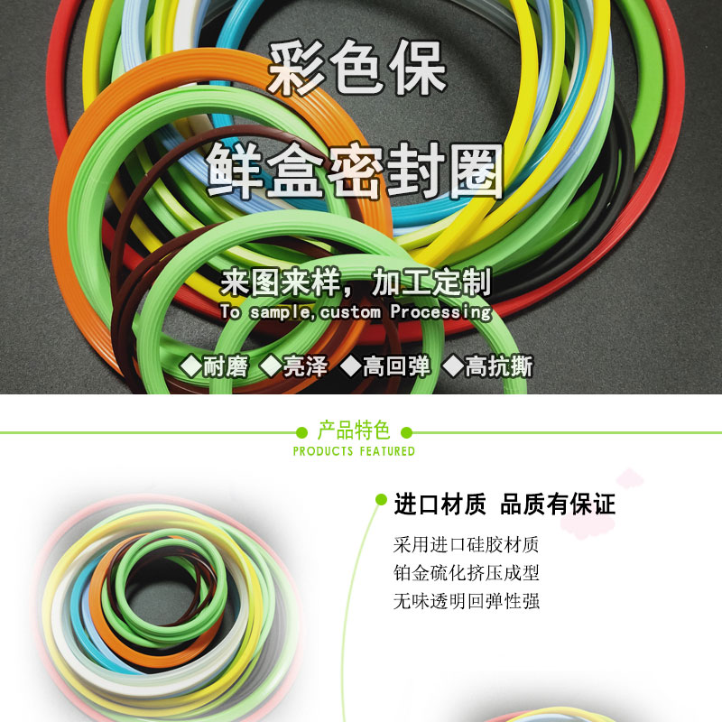 粘接硅橡膠制品產(chǎn)品名稱:彩色保鮮盒密封圈
