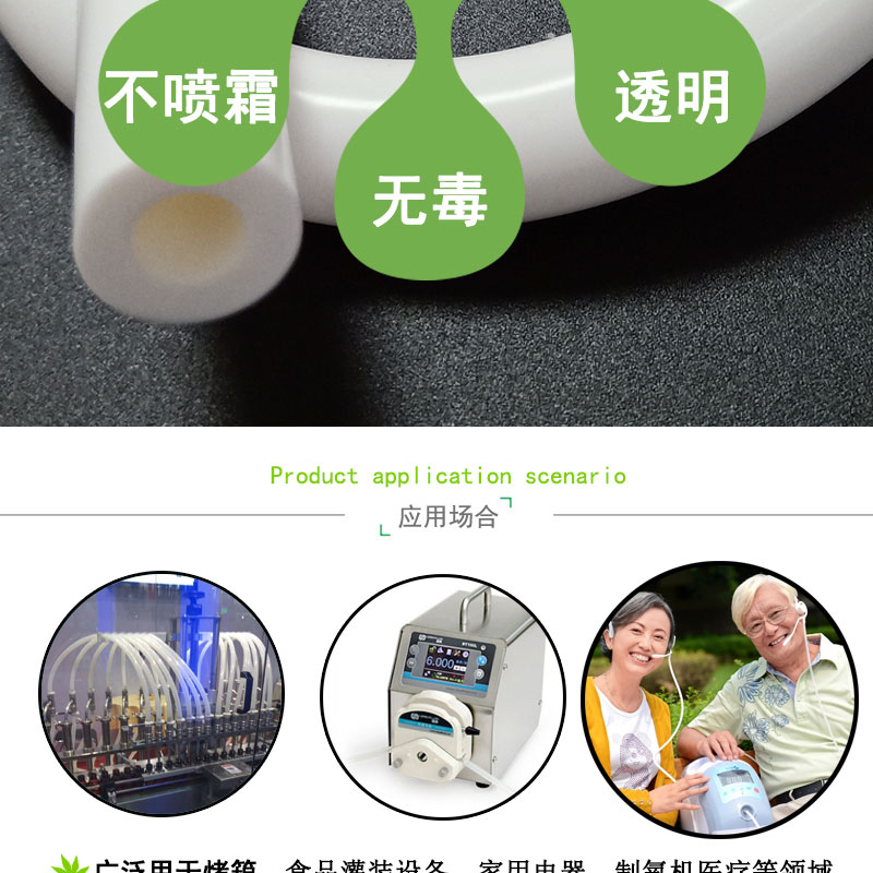 產(chǎn)品用途: 醫(yī)療設(shè)備、生物制藥、食品引流、食品加工機(jī)械等