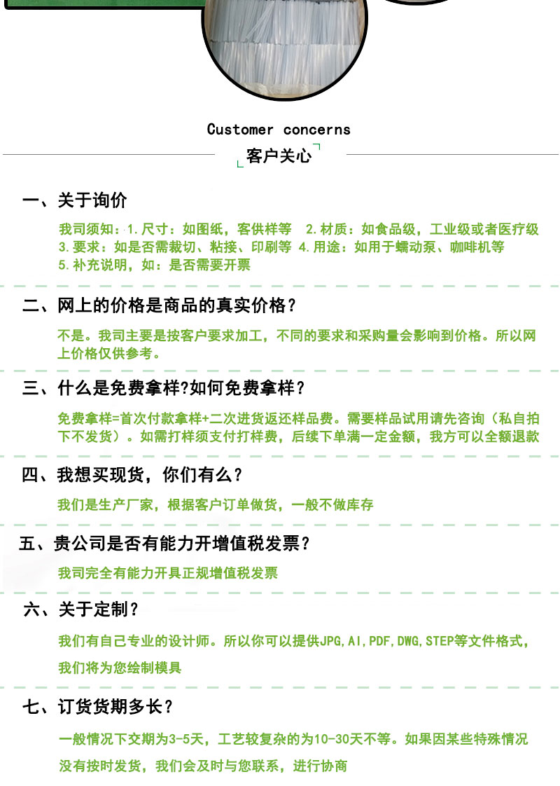 產(chǎn)品硬度 | 20-80A | 打樣時間 | 7天內(nèi) | 產(chǎn)品樣板 | 現(xiàn)樣免費(fèi) |