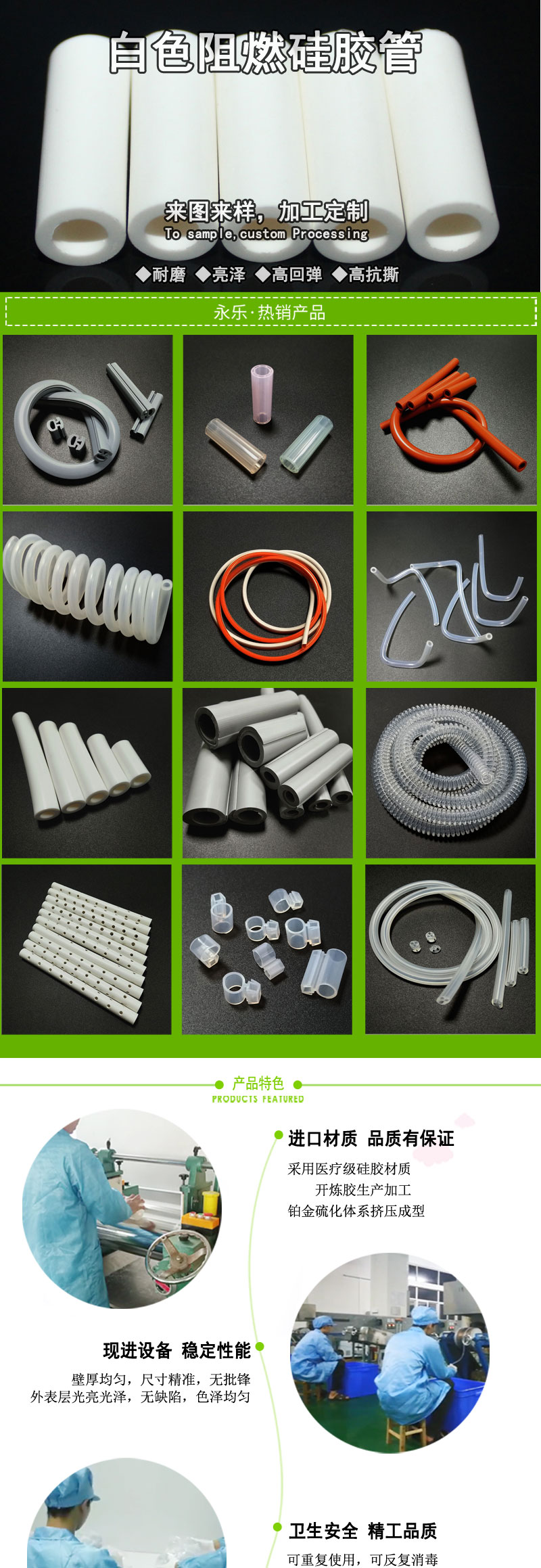 擠出硅橡膠制品產(chǎn)品材質(zhì): 純進(jìn)口硅膠原料