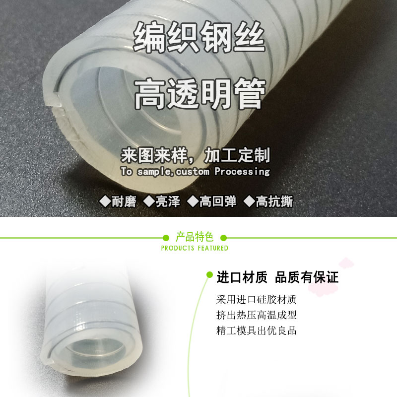 編織硅橡膠制品產(chǎn)品名稱:編織鋼絲高透明管