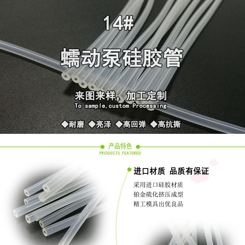 14#蠕動泵硅膠管:采用進(jìn)口硅膠原材料,一體式成型,內(nèi)壁平滑;硬度60度(邵氏硬度值30-90度);耐溫范圍廣(-50~+280℃),可以適應(yīng)高、低溫設(shè)備需求,并耐老化,耐磨。常規(guī)PE袋+紙箱包裝,特殊要求可按標(biāo)準(zhǔn);符合SGS、FDA、LFGB、生物相溶性等;用于灌裝機(jī)、蠕動泵專用、醫(yī)療醫(yī)用器械、輸液泵等。