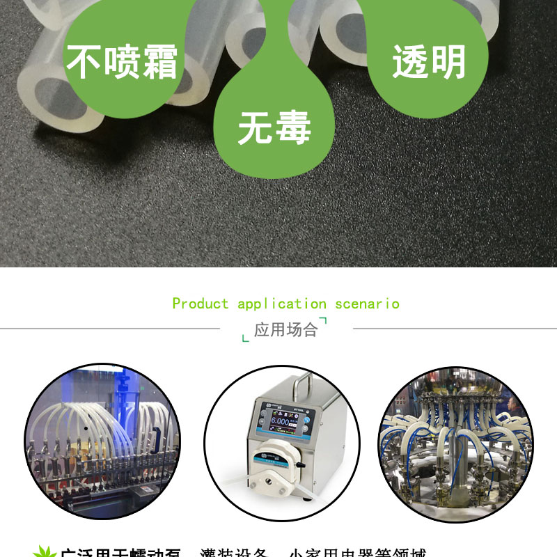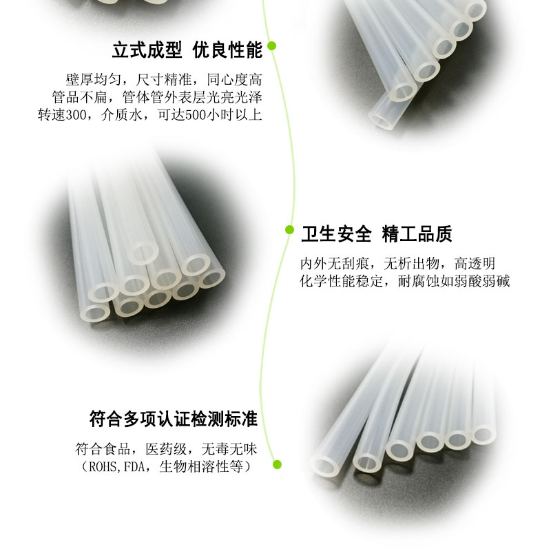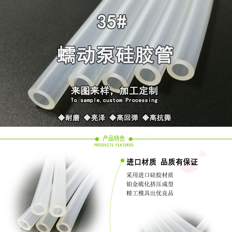 35#蠕動泵硅膠管:采用進(jìn)口硅膠原材料,連續(xù)擠出一次成型,內(nèi)壁平滑;常規(guī)硬度60度(邵氏硬度值30-90度);耐溫范圍廣(-50~+280℃),可以適應(yīng)高、低溫設(shè)備需求,并耐老化。常規(guī)PE袋+紙箱包裝,特殊要求可按客戶標(biāo)準(zhǔn);產(chǎn)品符合SGS、FDA、LFGB、生物相溶性等;用于灌裝機(jī)、蠕動泵專用、醫(yī)療醫(yī)用器械、輸液泵等。